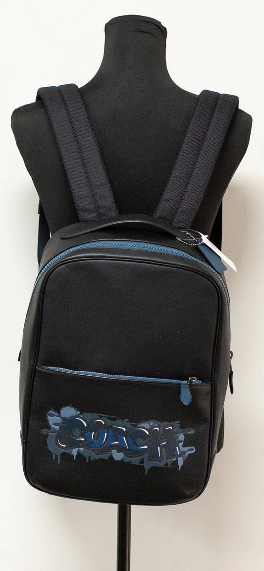 Coach Mens Westway Medium Black Leather Graffiti Logo Backpack