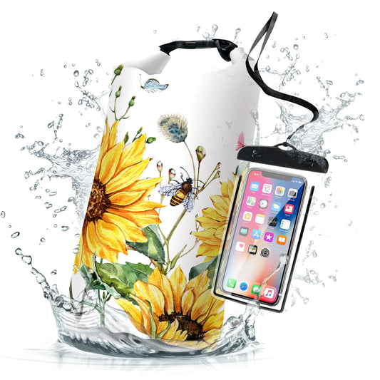 Cliduli Waterproof Dry BagRoll Top Summer Sunflowers Waterproof Backpack 5L/10L/20L Floating and Lightweight Bags for Kayaking Boating Fishing Swimming and Camping with Waterproof Phone Case