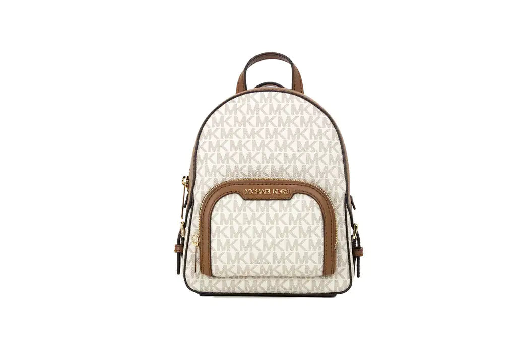 Michael Kors Jaycee XS Vanilla Signature PVC Zip Pocket Shoulder Backpack Bag