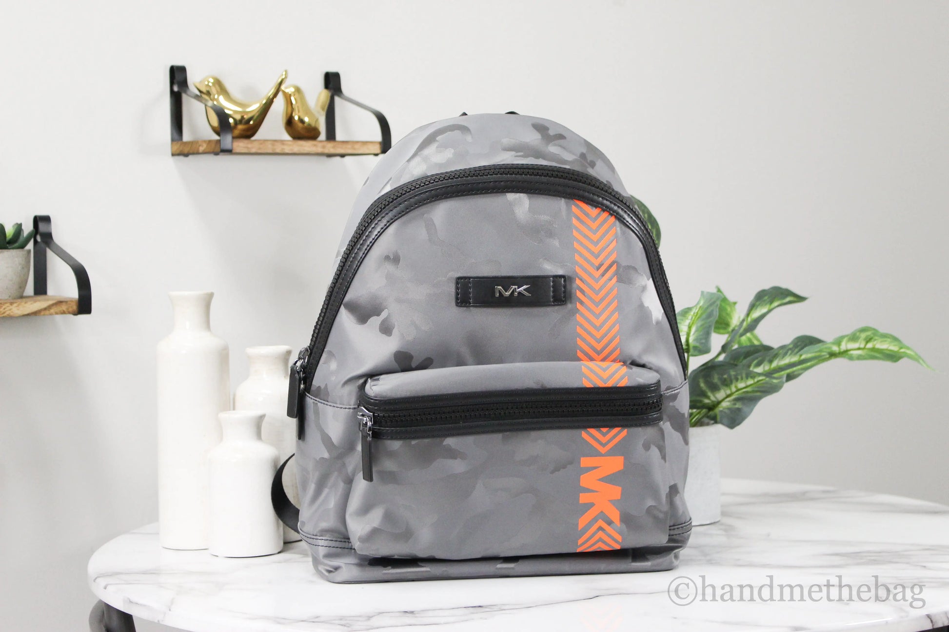 Michael Kors Kent Nylon Grey Camo Orange Neon Backpack