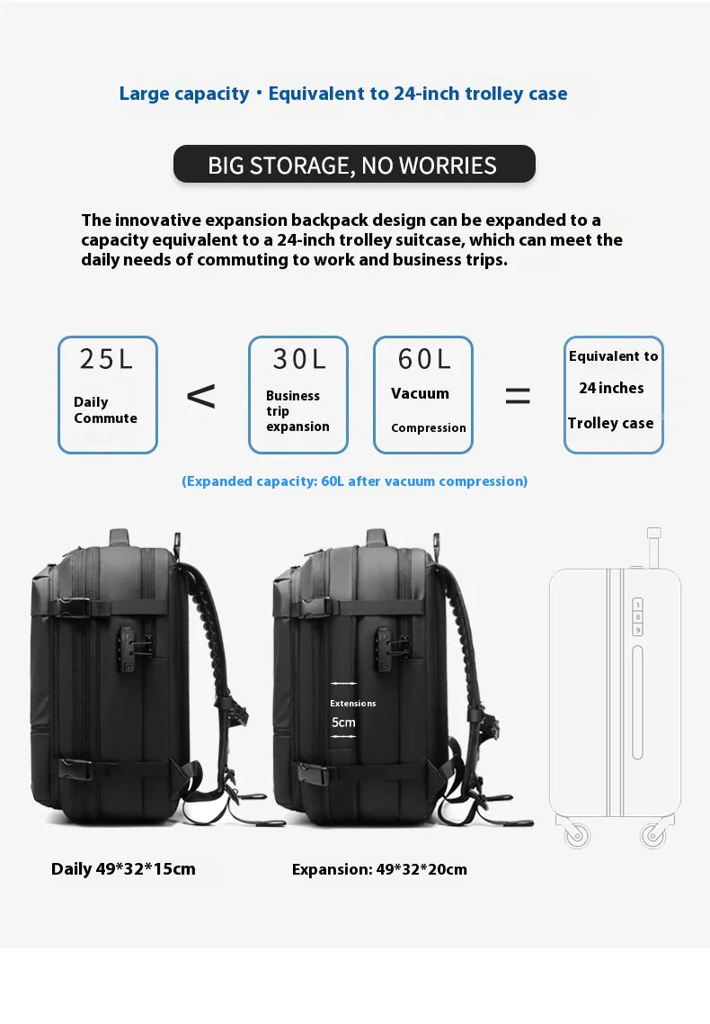 - Large Capacity: Ample space for your laptop, books, clothes, and other essentials.